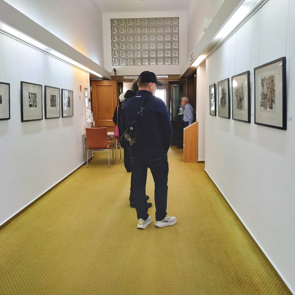 Der zweite Preisträger ist Horst-Peter Meyer (Jahrgang 1947) aus Weimar in Thüringen, der hiermit für sein monumentales End Spiel im Abschieds Raum (2023, Kaltnadelradierung, 139 × 99 cm) während der Vernissage im Museum für Druckkunst Leipzig am 22.11.2024 ausgezeichnet wurde. Sein vielfältiges Schaffen wird noch umfangreich im Grafikmuseum Stiftung Schreiner vorgestellt.